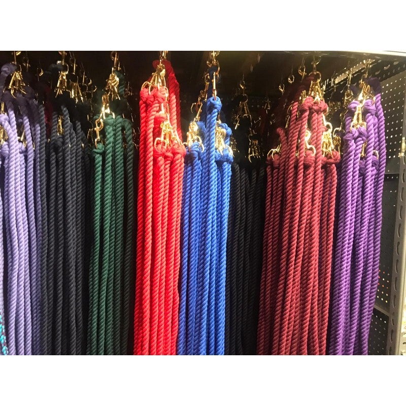 Our English made Lead Ropes are the best quality ropes in the UK and are fantastic value for money, 3/4" thick cotton lead rope, 1.9m in length. High quality shiny Brass trigger hooks. Ropes are really shiny vibrant colours so stand out perfectly.