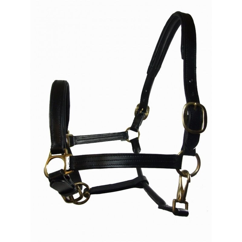 Three Row Leather Headcollar, padded head and nose, round throat, buckles both sides,Solid Brass fittings throughout. Quality affordable headcollar, superb quality for the money.