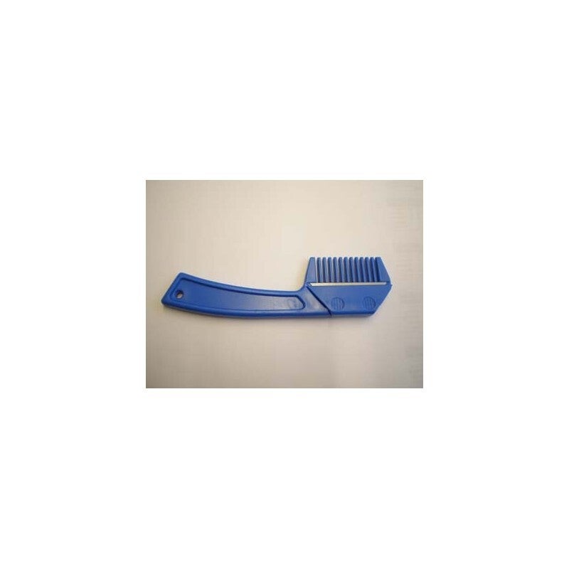 Mane comb with blade attached for brushing, pulling and trimming.